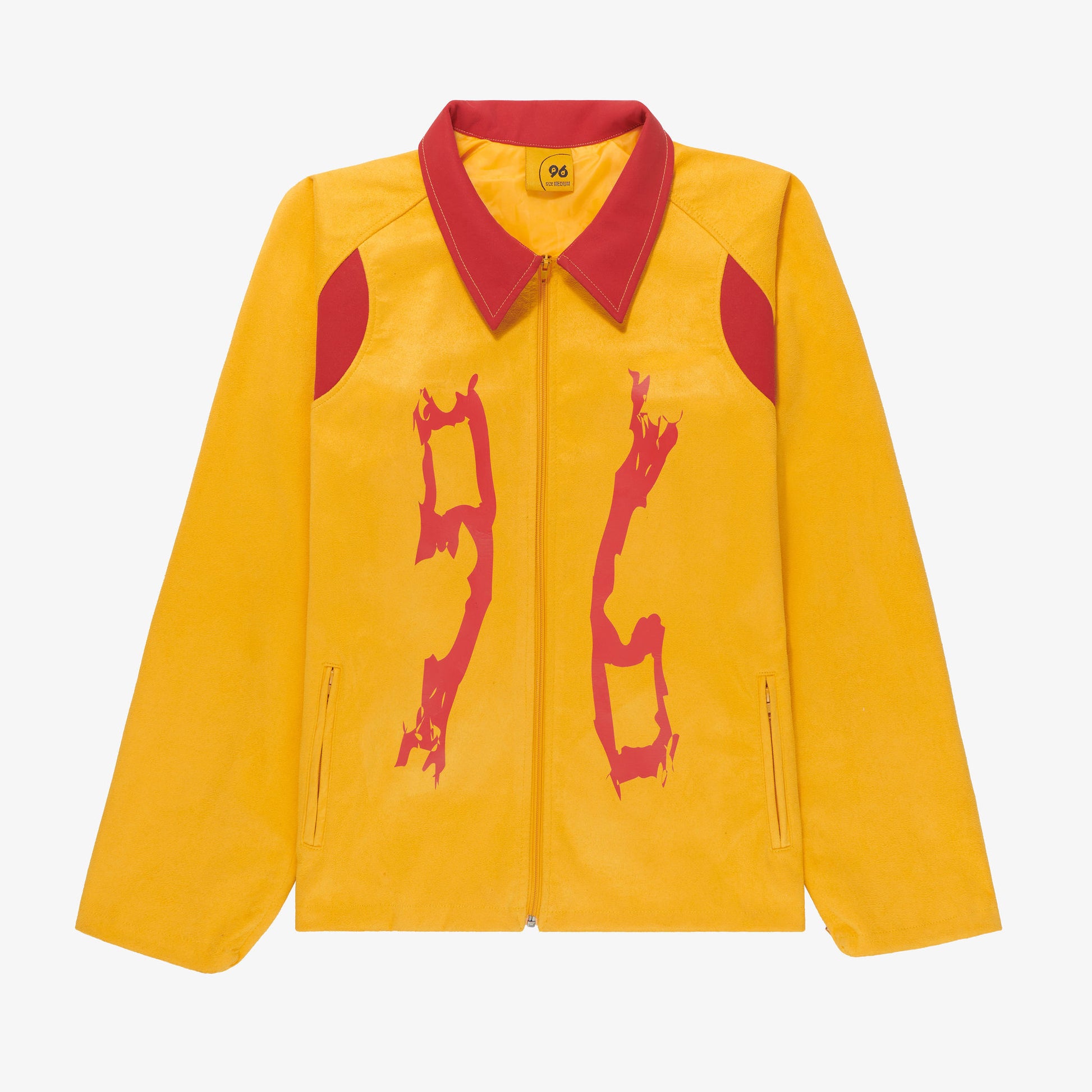 Constructed from vegan-friendly suede, this 'Dancing Stars' Yellow Suede Jacket features a vibrant '96' sublimation on the front, with 'Stars' printed on the back panel. It has a zipper closure at the front and welt pockets and sleeve zipper and a standard fit.